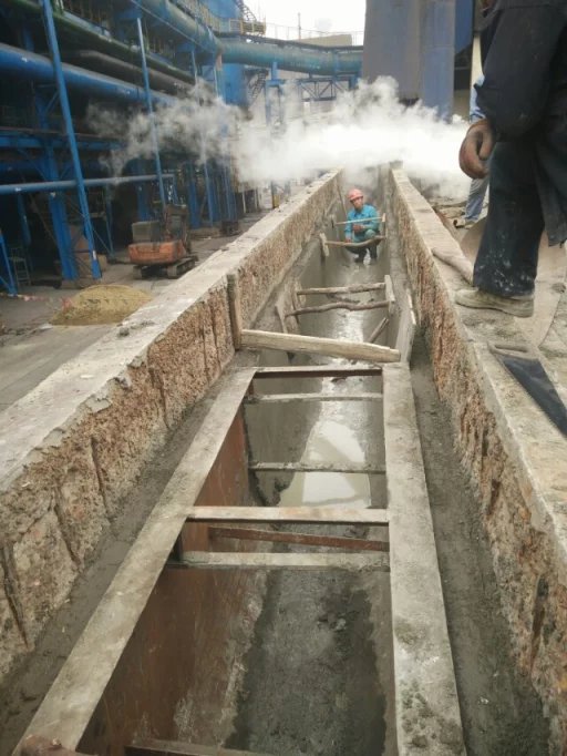 陶瓷耐磨料:水沖渣部位替代鑄鋼槽材料,鑄鋼槽的使用壽命是2年,陶瓷耐磨料的壽命至少5年以上,